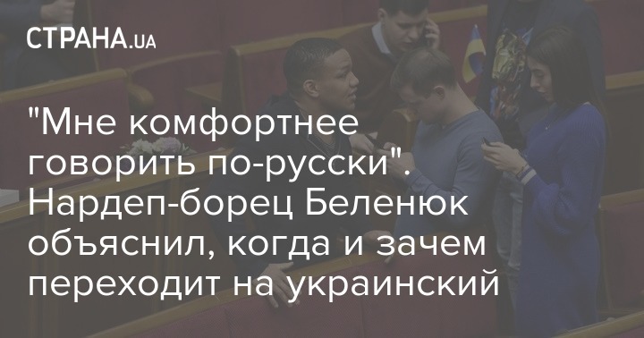 Депутат от "Слуги народа" и чемпион мира по греко-римской борьбе Жан Беленюк рассказал, что в быту разговаривает на русском языке, хотя хорошо знает и украинский. По его словам, ему комфортнее говорить по-русски в русскоговорящей среде.