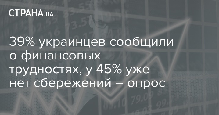 С начала действия карантина в рамках борьбы с распространением коронавирусной болезни Covid-19 39% украинцев сообщили о появившихся финансовых трудностях, 45% завили про отсутствие сбережений. Около 90% украинцев отмечают, что с переходом на карантин  у них возникли новые проблемы.