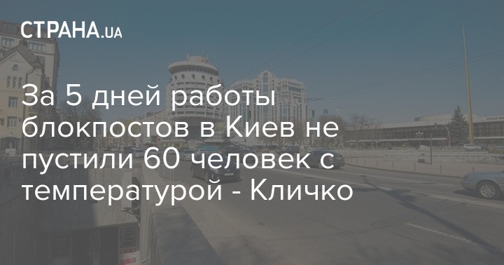 В период работы КПП на въездах в Киев с 16 по 20 апреля в столицу не пустили около 60 человек, у которых после осмотра медиками выявляли повышенную температуру тела. Об этом заявил мэр Киева Виталий Кличко на брифинге во вторник, 21 апреля.