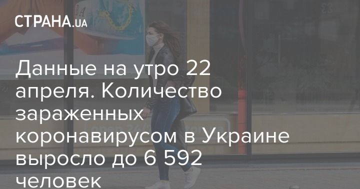 По состоянию на утро среды, 22 апреля, в Украине зафиксировано уже 6 592 случая заражения коронавирусом Covid-19. Вчера, 21 апреля в стране было 6 125 зараженных человек