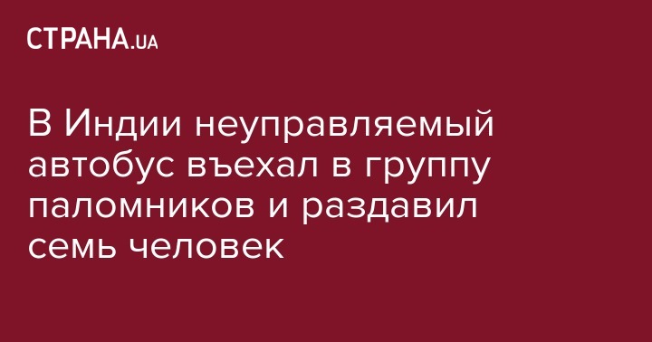 На севере Индии, в штате Химачал-Прадеш автобус столкнулся с группой верующих. В результате 7 человек погибли на месте, еще 16 паломников были госпитализированы в больницы в крайне тяжелом состоянии. Об этом сообщает ТАСС