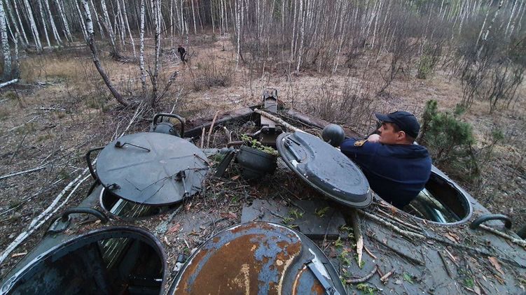 В Чернобыльской зоне тушат пожары в 4 лесничествах, для прокладки дороги привлечена военная техника. Фото: ГСЧС