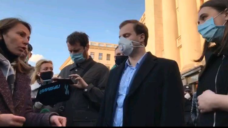 В разгар акции к участникам и журналистам вышли пресс-секретарь президента Юлия Мендель и прокурор Андрей Сенюк.