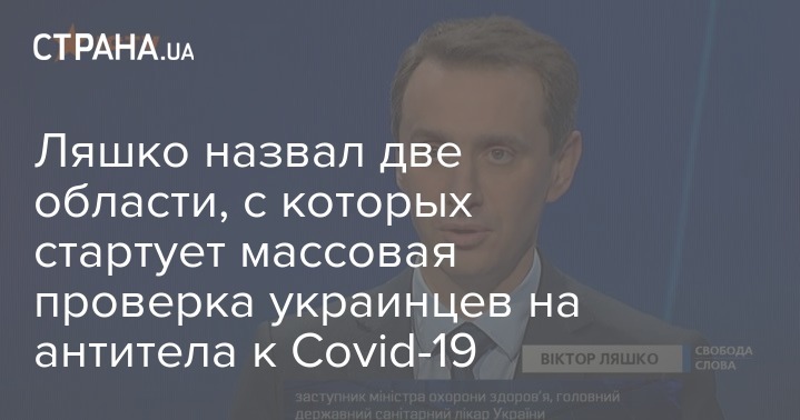 Заместитель министра здравоохранения, главный санитарный врач Украины Виктор Ляшко рассказал о том, в каких регионах начнутся первые ИФА-тестирования (иммуноферментная диагностика - Ред.) на наличие у украинцев антител к Covid-19. По словам Виктора Ляшко, проверка на антитела на первом этапе начнется в Одесской и Сумской областях.