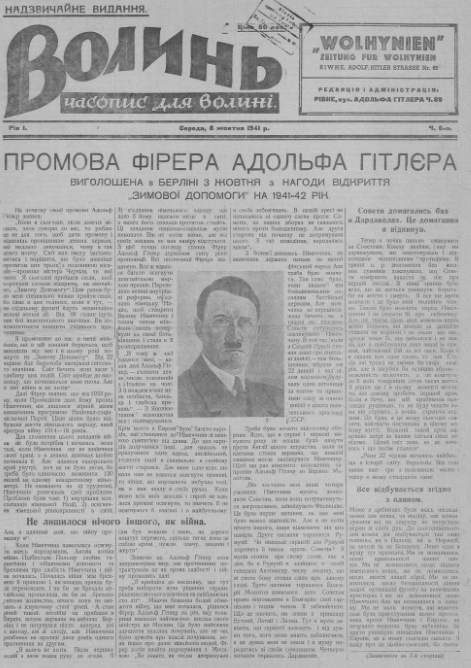 С 1941 по 1943 год - главный редактор газеты "Волынь", которая издавалась при нацистской оккупации.
