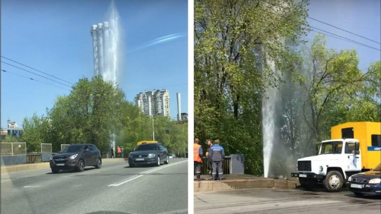 В Киеве на Воздухофлотском проспекте в среду, 29 апреля, прорвало трубу, в результате чего образовался гигантский "фонтан".