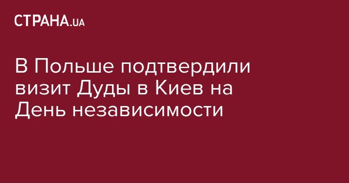 Президент Польши Анджей Дуда посетит Киев, где примет участие в праздновании Дня независимости Украины.