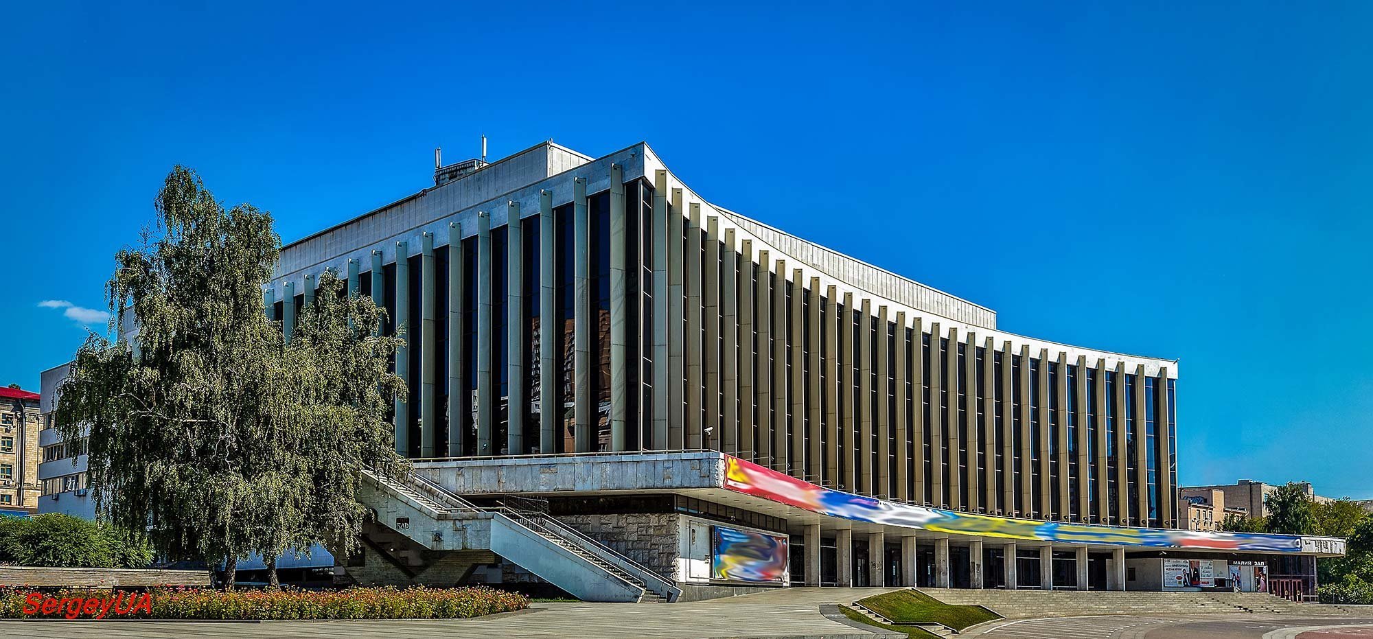 К сожалению, на этом здании нет афиш о взрывных и ярких событиях в Киеве.
