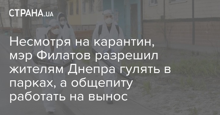 Несмотря на продолжение общегосудартсвенного карантина, в Днепре с четверга, 30 апреля заработают заведения общественного питания (без допуска гостей в зал, только на вынос), химчистки, СТО, ремонтные мастерские. При их посещении обязательным условием остается наличие маски, перчаток и антисептика. Об этом на своей странице в соцсети написал городской голова Днепра Борис Филатов.