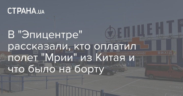 В "Эпицентре" рассказали, кто оплатил полет "Мрии" из Китая и что было на борту