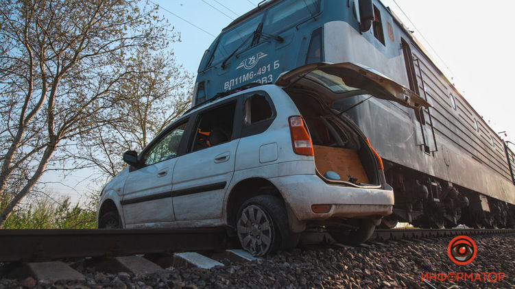 Под Днепром поезд протаранил легковушку и тащил ее сотни метров, погибли пожилые супруги