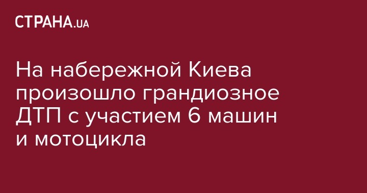"Масштабное ДТП прямо сейчас в Киеве на Набережной: разбиты 6 авто и мотоцикл. Пострадал пилот. На месте работает патруль полиции. Большая пробка", - сообщили журналисты.