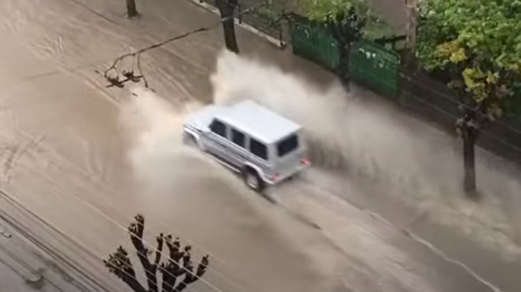 После ливня по некоторым улицам машины проезжали с трудом. Фото: скриншот с видео