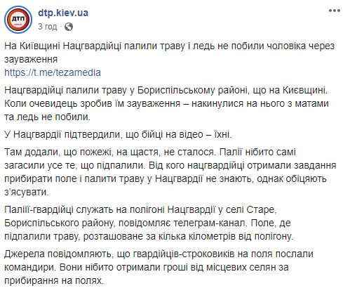 Под Киевом Нацгвардейцы жгли сухую траву на поле. Фото: dtp.kiev.ua