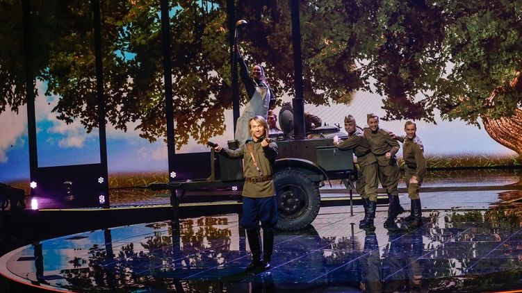 Всего в концерте будет 37 номеров. И каждый из них - это отдельная история со своей драматургией. Например, в номере Светланы Лободы на песню "Десятый батальон" на сцену из вагона выйдут ветераны, символизируя первый поезд с солдатами-победителями, который прибыл в 1945 году на Белорусский вокзал Москвы.