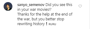 "Вы это увидели в своих военных фильмах? Спасибо за помощь в окончании войны, но лучше прекратите переписывать историю".