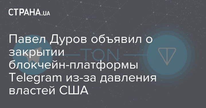 Основатель мессенджера Telegram Павел Дуров объявил о закрытии блокчейн-платформы Telegram Open Network (TON).