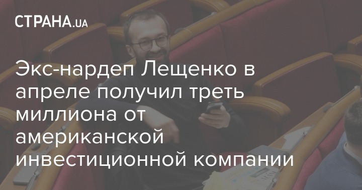 Экс-нардеп Лещенко в апреле получил треть миллиона от американской инвестиционной компании