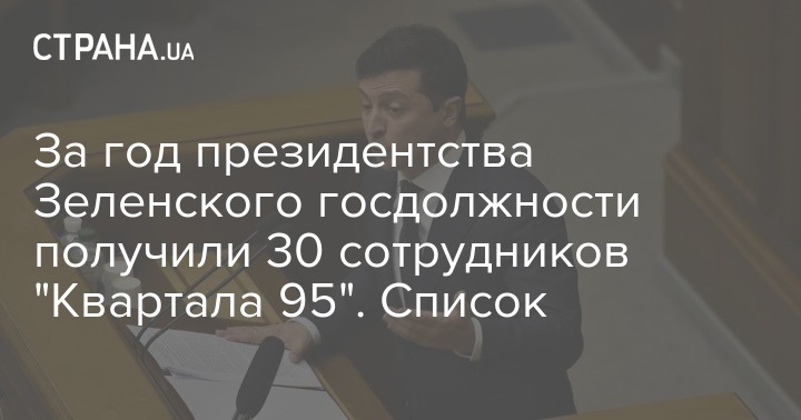 За год президентства Владимира Зеленского более 30 человек, работающих ранее в "Студии Квартал 95", а также дочерних организациях, или сотрудничавшие ранее с главой государства либо его окружением, получили государственные должности.