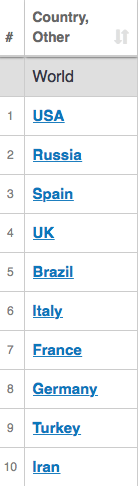 Однако суточный прирост зараженных как и прежде высокий - около 9-10 тысяч (хотя раньше было больше 11). Впереди в мире только США и Бразилия - 23 и 14 тысяч соответственно.