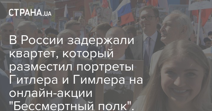 В России, где на репетиции парада к 9 Мая коронавирусом заразились сотни военных, были задержаны четверо человек, которые на онлайн-акции "Бессмертный полк" разместили фотографии лидеров нацистской Германии - Адольфа Гитлера и Генриха Гимлера.