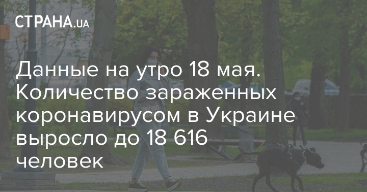 По состоянию на утро понедельника, 18 мая, в Украине выявили уже 18 616 случаев инфицирования коронавирусом. В это же время вчера, 17 мая, сообщалось о 18 291 случае. За сутки выявлено 325 новых заболевших, выздоровело 160 пациентов, и умерли 21 человек.