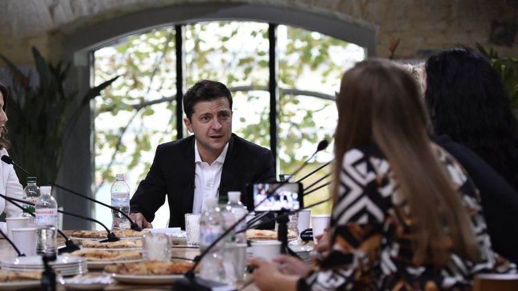 Аккредитовано было около 300 журналистов. Их приводили к президенту на второй этаж сетами по несколько человек. Они подсаживались за стол к гаранту и могли задавать вопросы. При этом ожидавшим внизу журналистам не было слышно, о чем говорят наверху, поэтому многие вопросы повторялись. О чем тогда говорил Зеленский - читайте здесь.