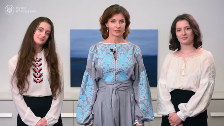 Многие известные украинцы, включая членов семьи Порошенко, 21 мая надели вышиванки. Скриншот из видео