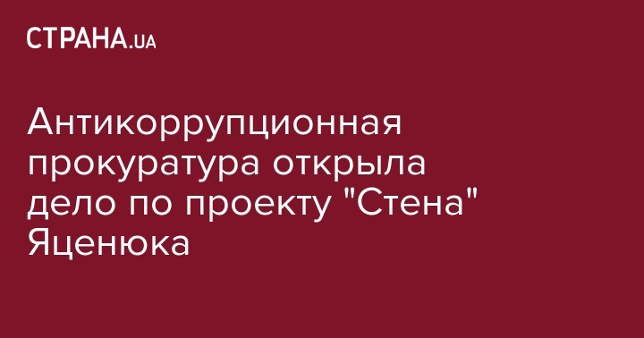 Проектом "Европейский вал" или более известным, как "Стена", ранее широко разрекламированным экс-премьером Арсением Яценюком, заинтересовалась Специализированная антикоррупционная прокуратура. Об этом сообщает ЛИГА.Новости.