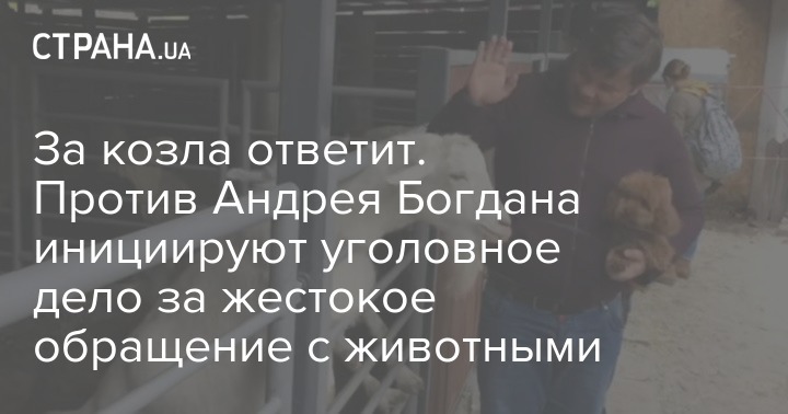 После обнародования видео из Киевского зоопарка в отношении бывшего главы Офиса президента Андрея Богдана инициировано уголовное производство. Инициаторов возмутило, что экс-чиновник с силой таскал за ухо содержащегося в зоопарке козла, а затем нанес ему несколько ударов в область головы.