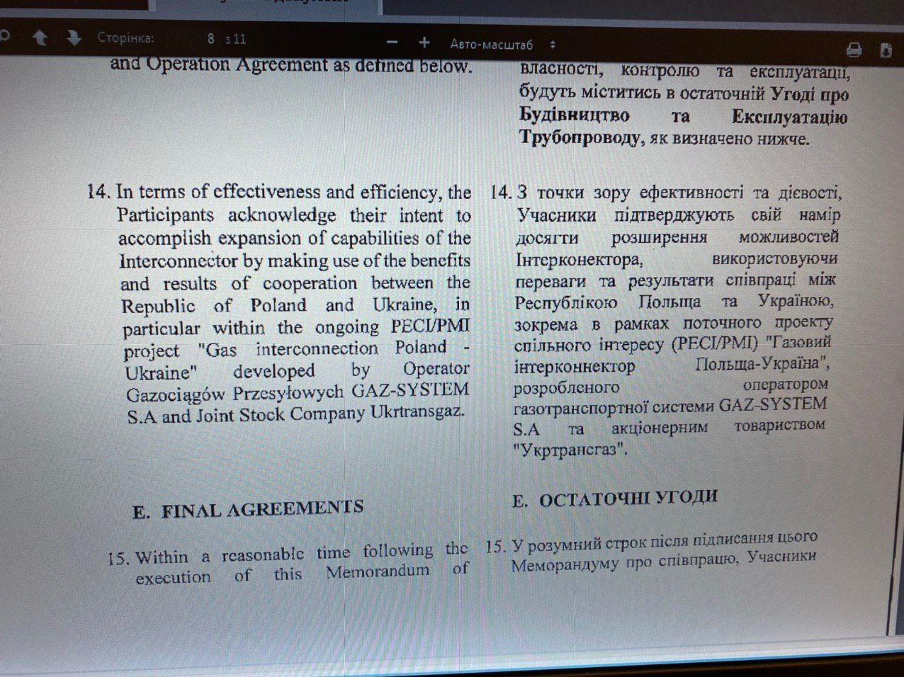 Подписанный Меморандум также предусматривает "построение новой газовой инфраструктуры между Польшей и Украиной".