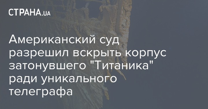Американская компания RMS Titanic Inc. совершит экспедицию, в рамках которой вскроет корпус затонувшего "Титаника". Делать это еще в 2000 году запретил суд. Целью же этой экспедиции станет уникальный телеграф Маркони, который находится в одной из кают. Из-за его ценности федеральный суд разрешил вскрыть корпус затонувшего корабля.
