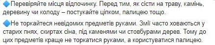 - Проверяйте места отдыха. Перед тем, как сесть на траву, камень, древесину или бревно - постучите палкой, исследуйте почву.