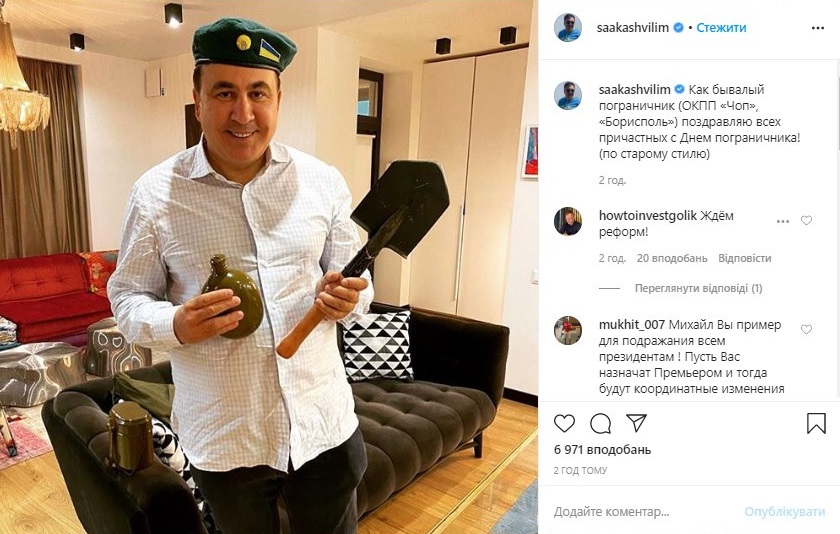 Саакашвили с флягой и лопатой поздравил украинцев с Днём пограничника