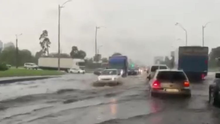 В Киеве из-за сильного дождя затопило часть дорог. Видео: t.me/KyivOperativ