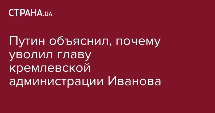 Владимир Путин объяснил внезапную отставку главы кремлевской администрации Сергея Иванова. Об этом сообщают РИА Новости.