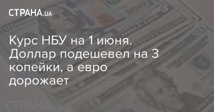 Курс НБУ на 1 июня. Доллар подешевел на 3 копейки, а евро дорожает