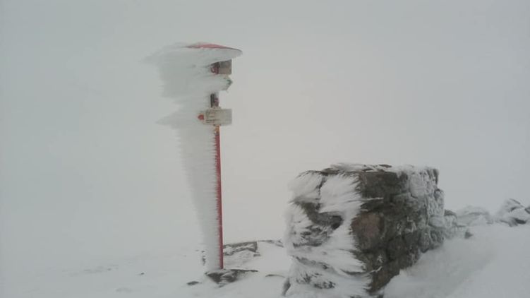 В первый календарный день лета на горе Поп Иван в Карпатах выпал снег, а температура опустилось до показателя в ноль градусов.
