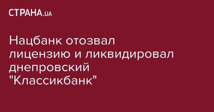 Национальный банк Украины отозвал лицензию у днепровского ПАО "Классикбанк". Об этом сообщает пресс-служба регулятора.