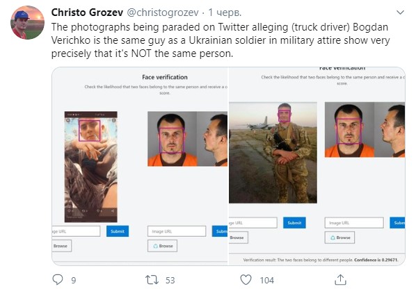 Выяснилось, что в ВСУ действительно служил Богдан Вечирко. Это полный тезка и однофамилец водителя из Миннесоты. Сестра Вечирко из Украины сообщила журналистам, что ее брат не причастен к событиям в Миннеаполисе, сейчас находится в Украине и никогда не посещал США.