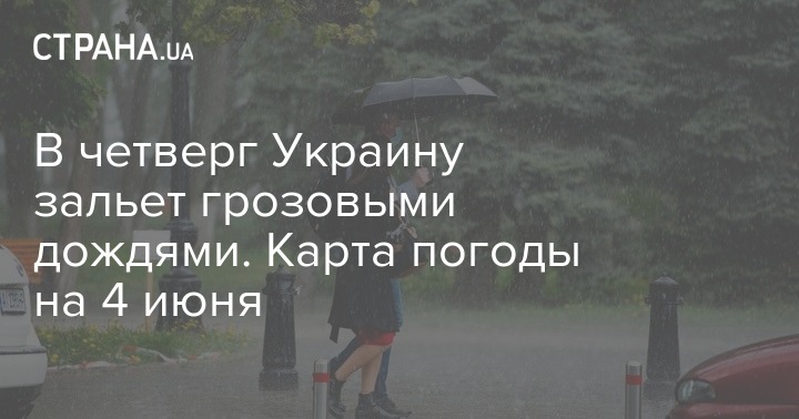 В четверг, 4 июня, большую часть областей Украины снова накроют грозовые дожди. Сухо будет в Луганске, Донецке, Запорожье и их областях, а также в Крыму. Температура воздуха днем будет держаться на уровне +16...+22 градуса.