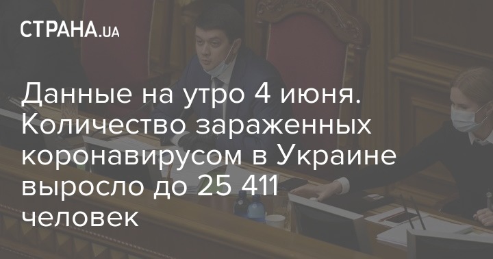 По данным ЦОЗ, на 4 июня (по состоянию на 09:00) в Украине 25 411 лабораторно подтвержденных случаев Covid-19, из них 747 летальных, 11 042 пациента выздоровели. За сутки зафиксировано 588 новых случаев. Всего проведено 392 316 тестирований методом ПЦР.