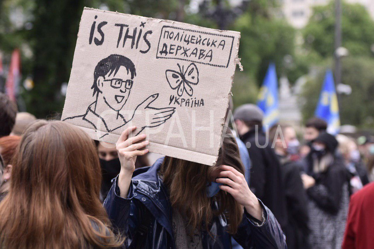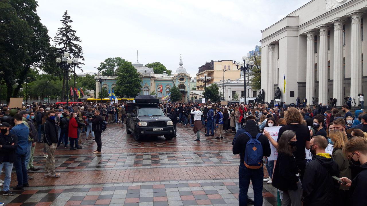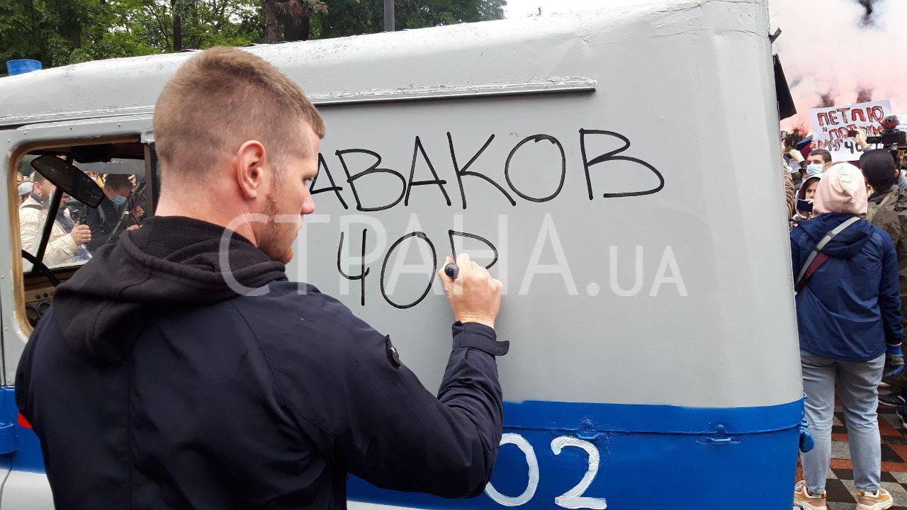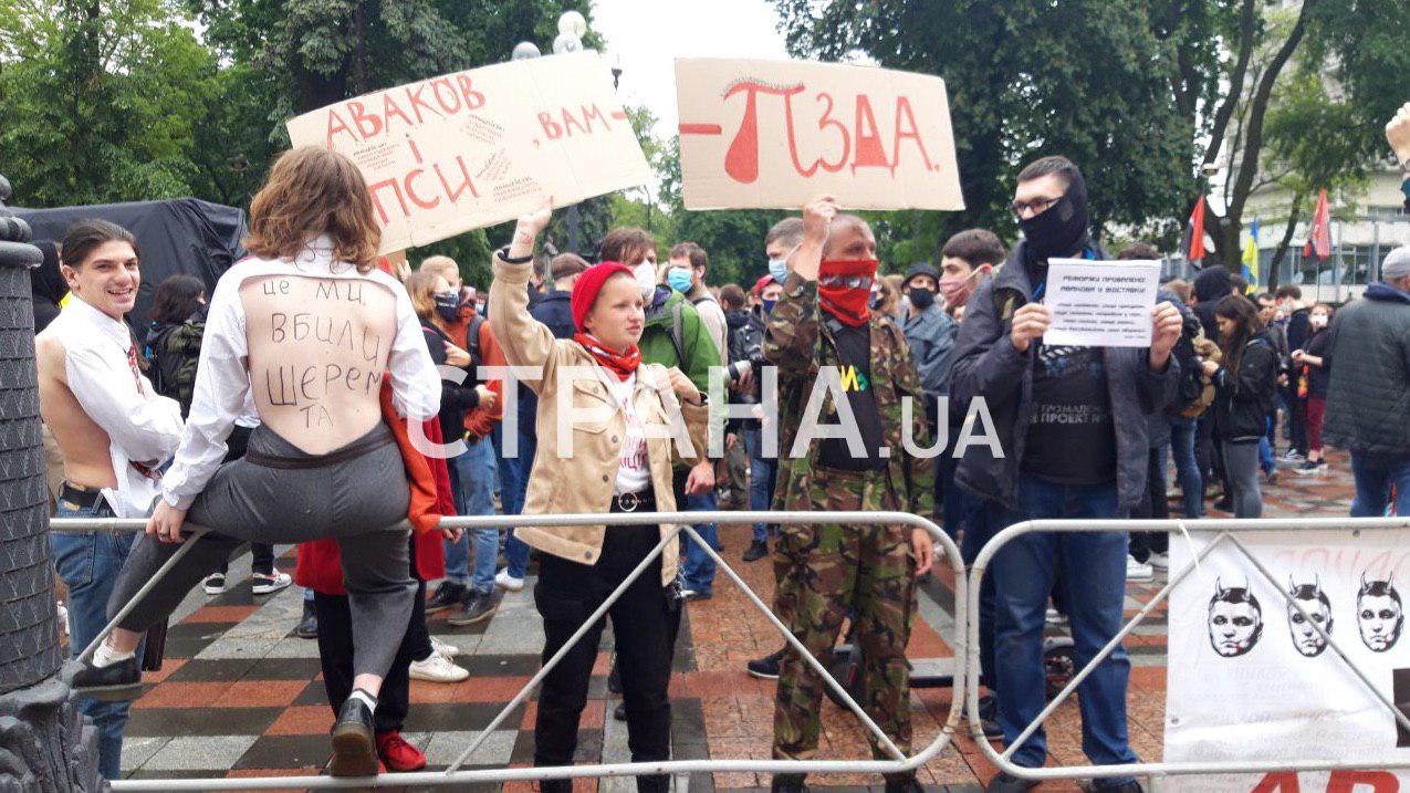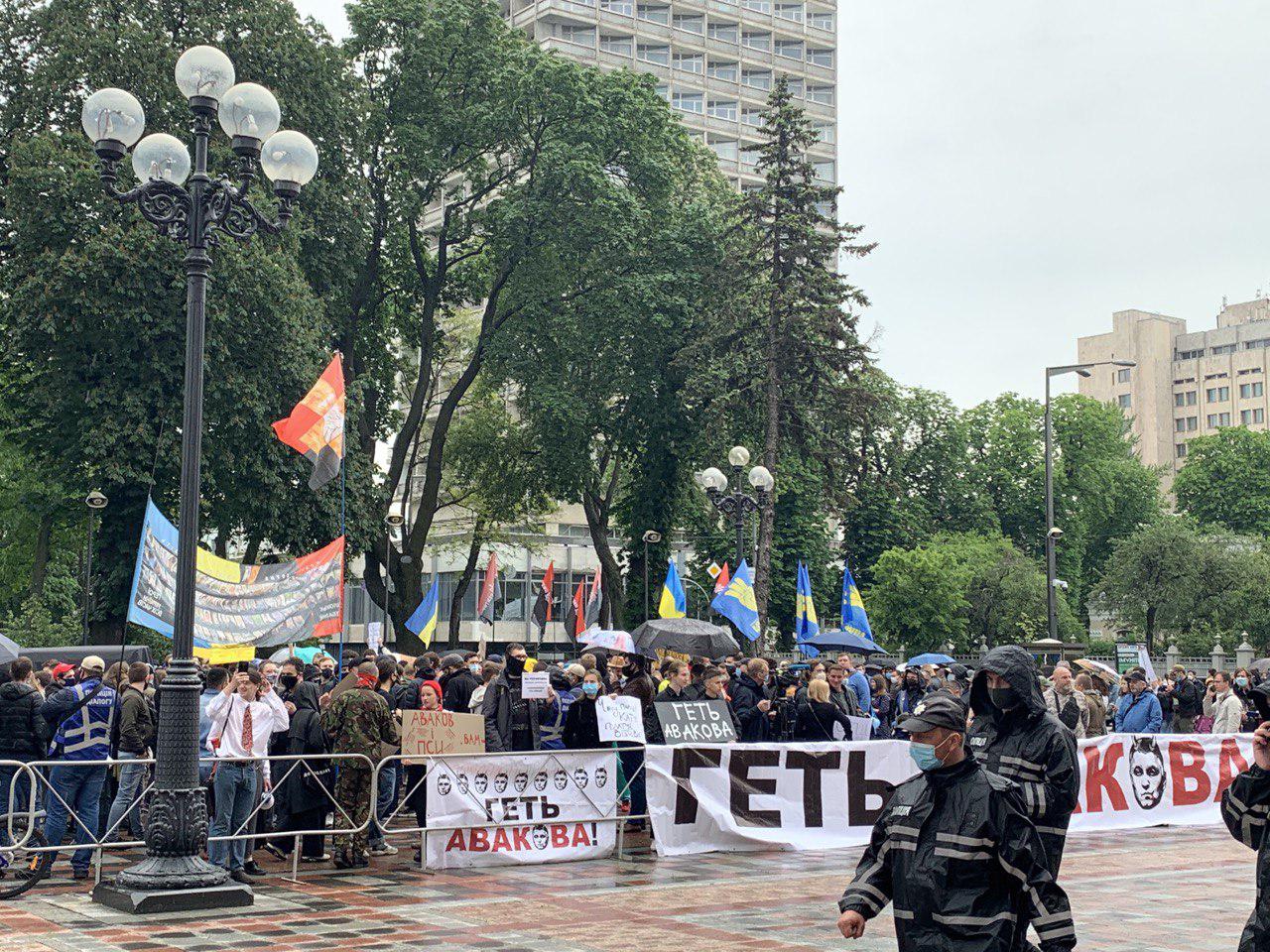 09:48 К митингующим пришел депутат "Слуги народа" - Евгений Шевченко. Ранее депутат эмоционально выступил в Раде за отставку Авакова