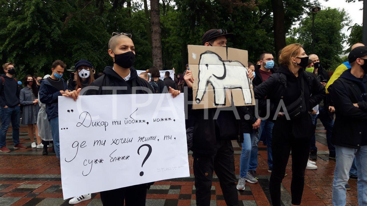 10:35  "Где совок - там и мусор". Под Радой вот такие плакаты и дым.