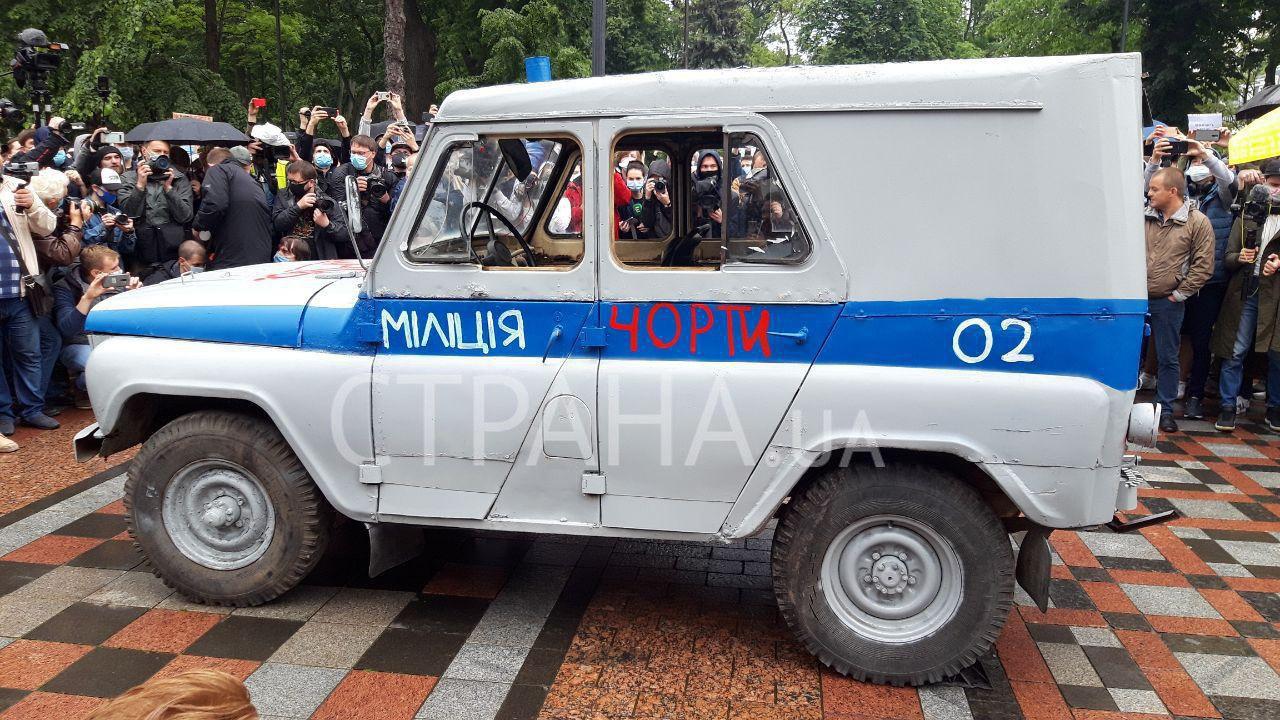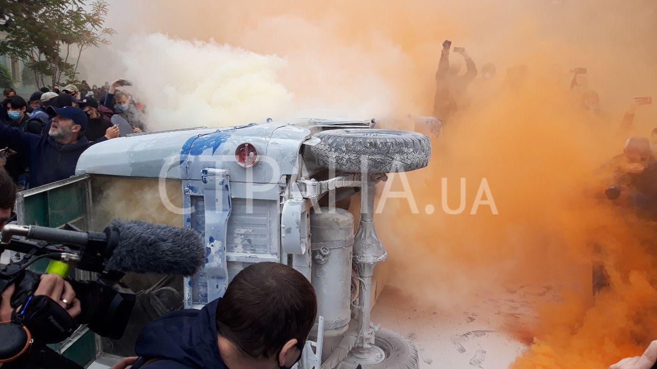 10:30  Под Радой перевернули и сожгли полицейский "бобик". Видео "Страны".