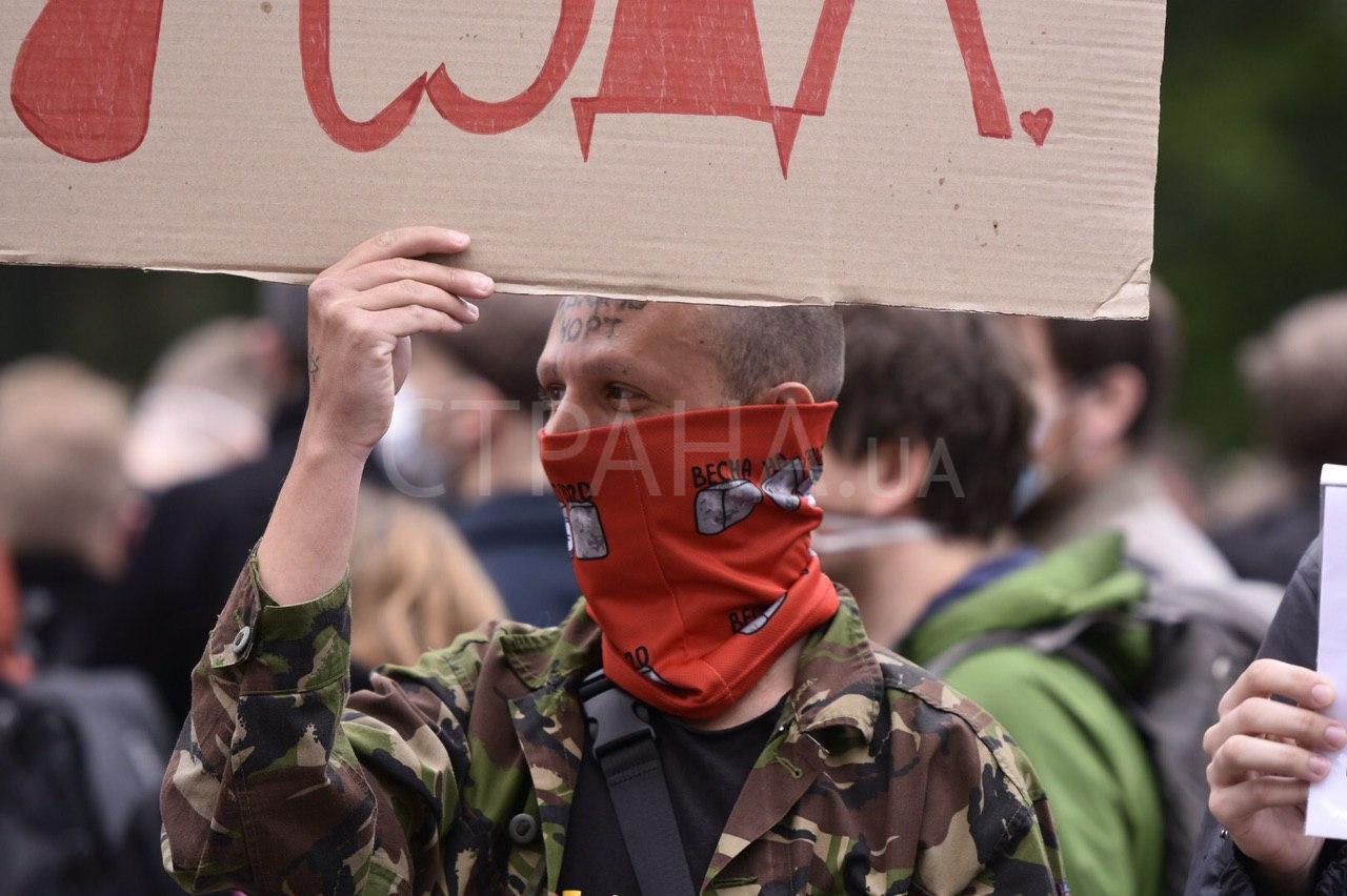 09:01 Некоторые стоят с плакатами "Поліція ґвалтує і вбиває"