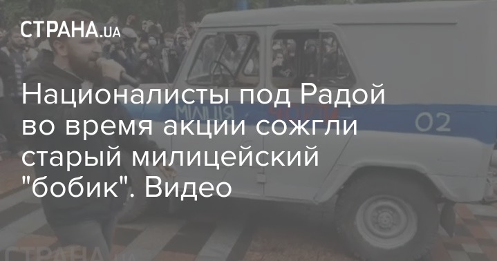 Во время акции протеста под Верховной Радой, где сегодня выступал министр МВД Арсен Аваков, протестующий сожгли старый милицейский "бобик", который по их задумке символизирует реформу в полиции. На автомобиле кроме надписи "Милиция" также красным было выведено "Черти" и черным - "Аваков - Черт".