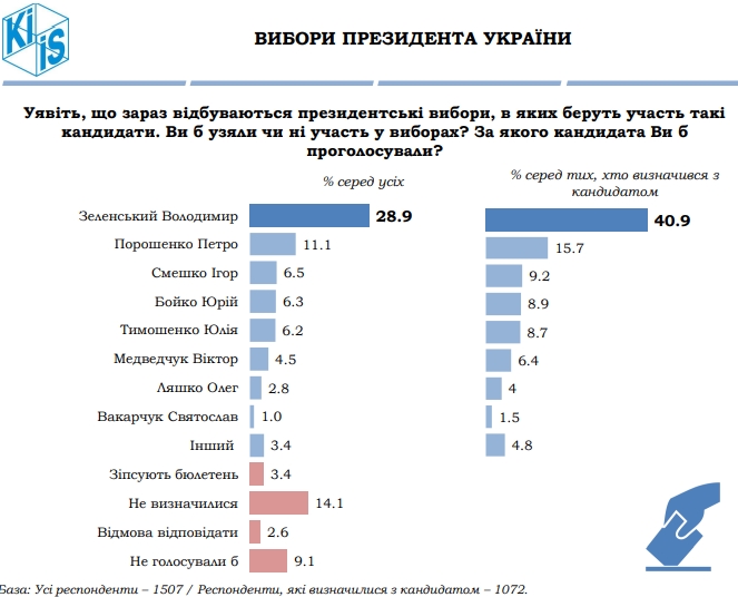 Опрос проводился 26-30 апреля среди 1,5 тыс. совершеннолетних респондентов на подконтрольной Украине территории методом телефонного интервью с использованием компьютера. Статистическая погрешность выборки не превышает 2,6%.