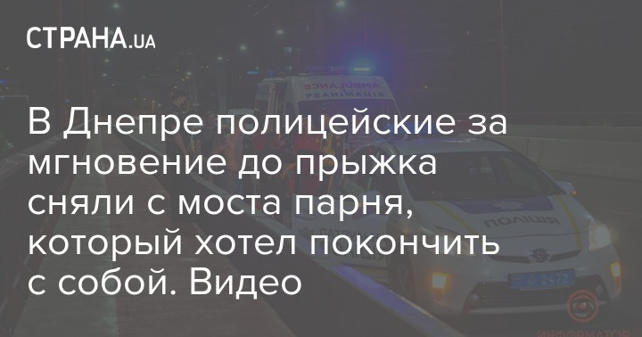 В Днепре полицейские за мгновение до прыжка сняли с моста парня, который хотел покончить с собой. Видео