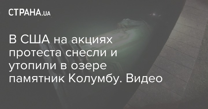 В США на акциях протеста снесли и утопили в озере памятник Колумбу. Видео